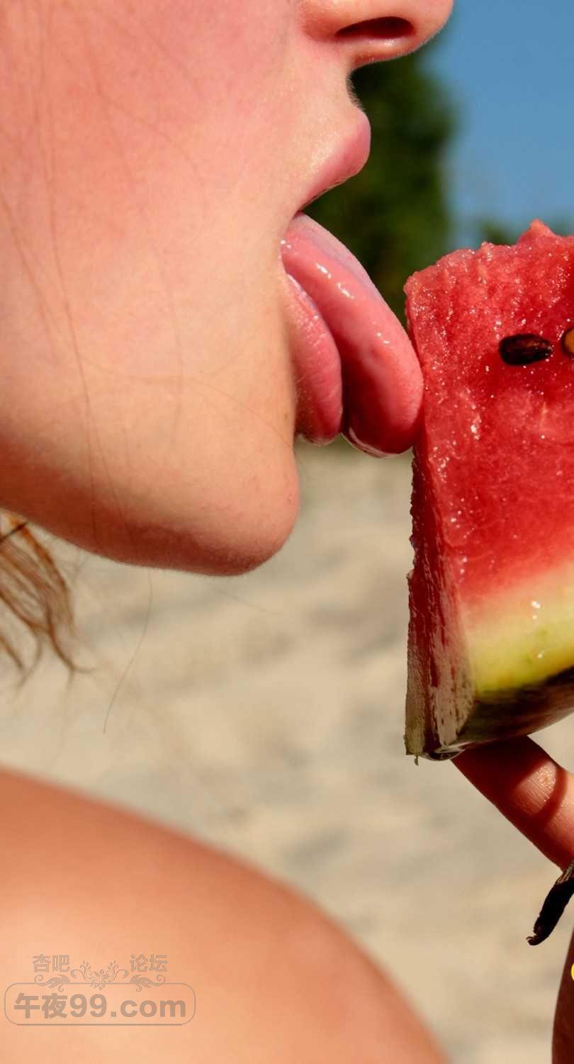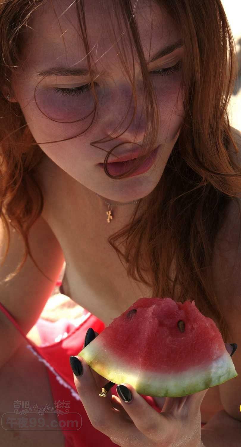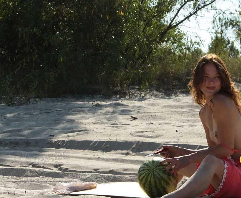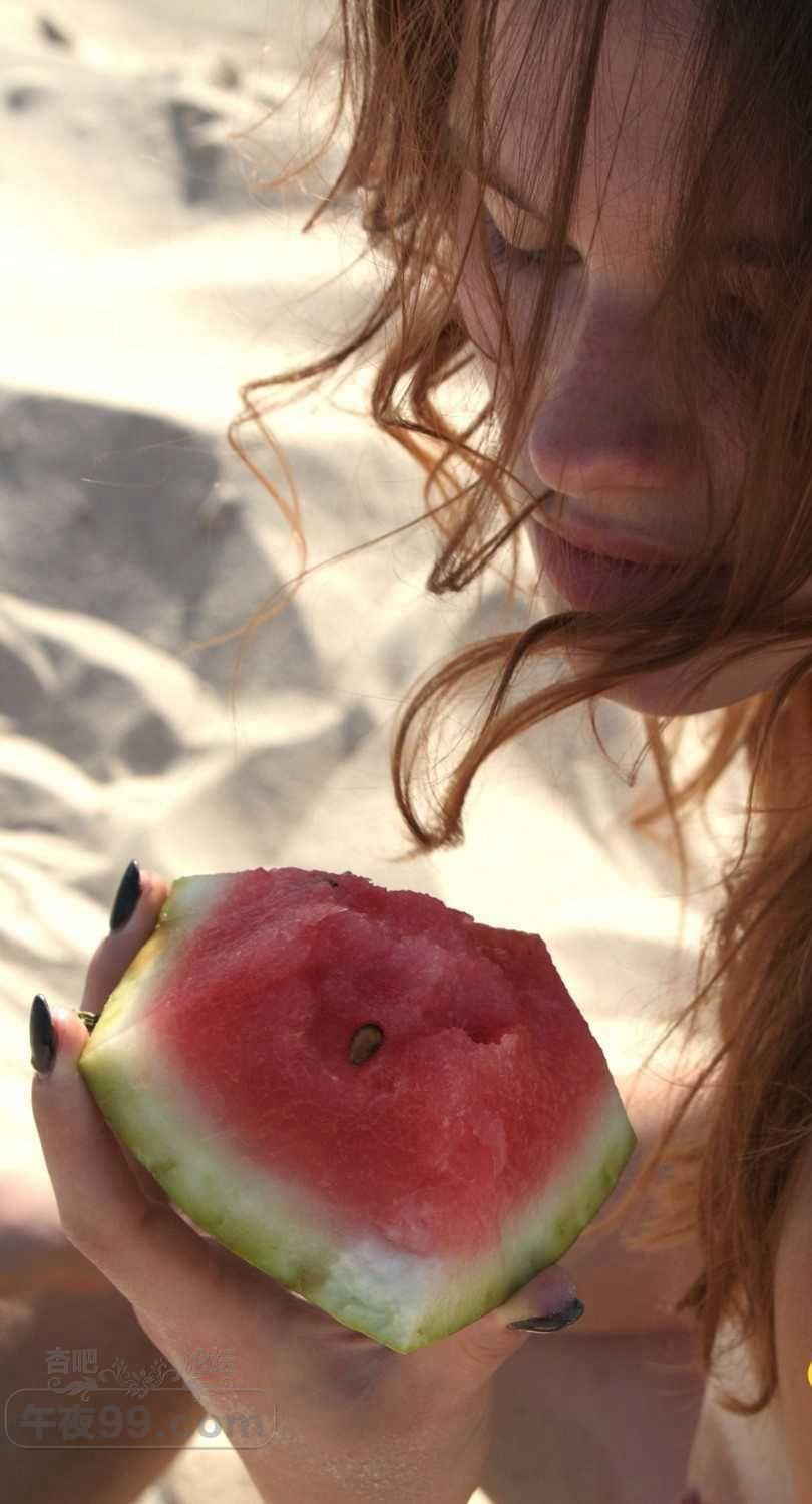 可爱的金发小姐姐在海滩边吃西瓜有要一起的吗【50P】
