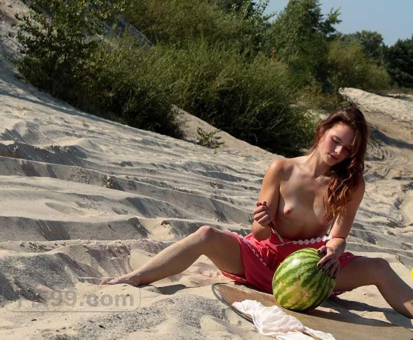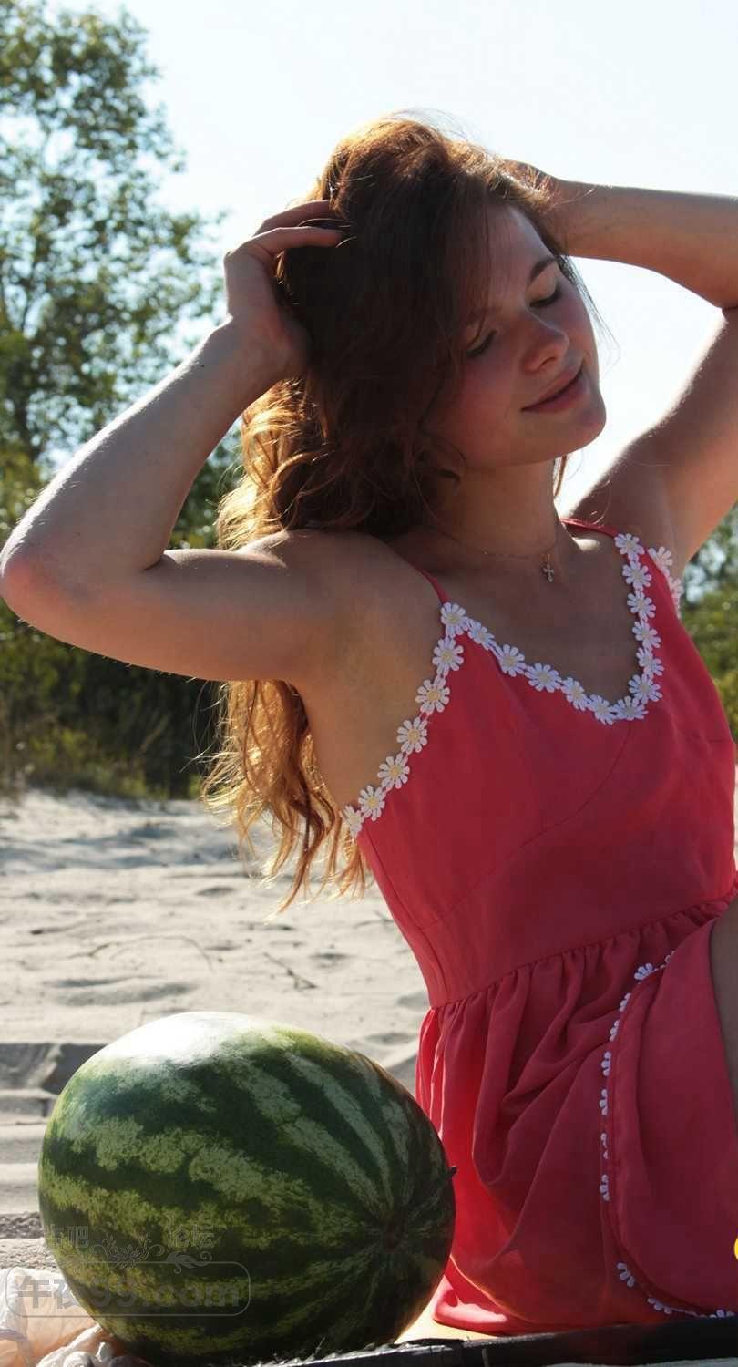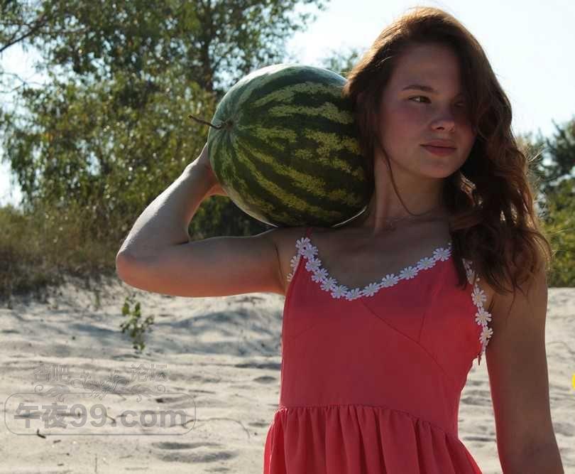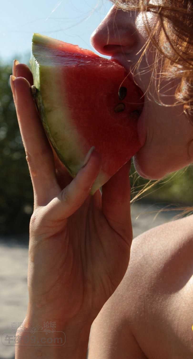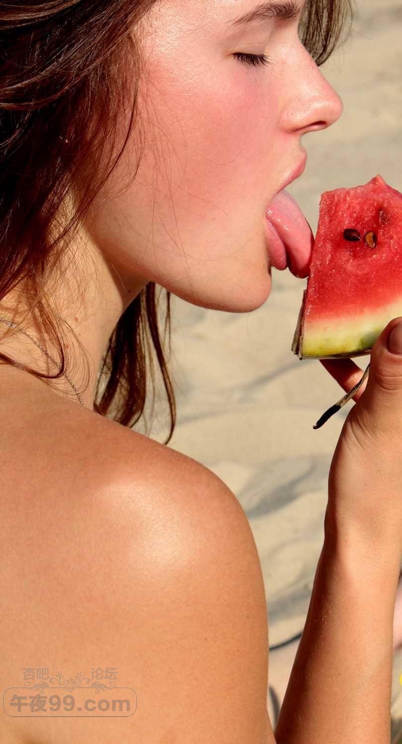可爱的金发小姐姐在海滩边吃西瓜有要一起的吗【50P】